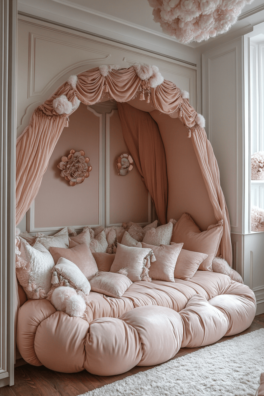Softness takes center stage in this dreamy luxury kids bedroom that feels like pure comfort from every angle. Oversized padded furniture, plush rugs, and cozy headboards create a warm and inviting atmosphere. Flowing fabrics and canopy beds add a sense of drama and elegance. Details like crystal lighting and embroidered linens bring in that extra designer touch. Every layer feels rich, cozy, and completely irresistible. Create a cloud-like escape with your own plush-inspired luxury kids bedroom now!