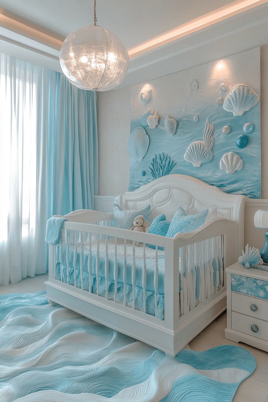 Ocean-inspired elements can bring a soothing and imaginative touch to nursery room decor that feels calm and inviting. Deep blues, sea greens, and gentle aquatic tones create a peaceful underwater vibe. Whimsical details like fish, coral, or mermaid accents add visual interest and storytelling charm. This theme encourages curiosity while maintaining a relaxing environment for sleep. The overall feel is tranquil, playful, and beautifully balanced. Tap to explore more nursery room decor ideas with an under-the-sea theme.