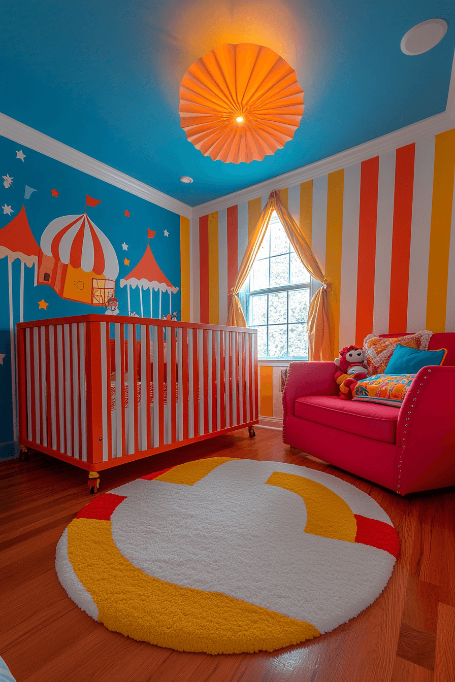 Bright colors and playful details can turn nursery room decor into a lively, joy-filled space that sparks imagination. Circus-inspired elements like stripes, bold patterns, and fun accents create an energetic atmosphere. The vibrant palette keeps the room cheerful while encouraging sensory exploration. Whimsical touches bring personality without overwhelming the design. The space feels fun, dynamic, and full of happiness. Tap to discover more nursery room decor ideas with a playful circus vibe.