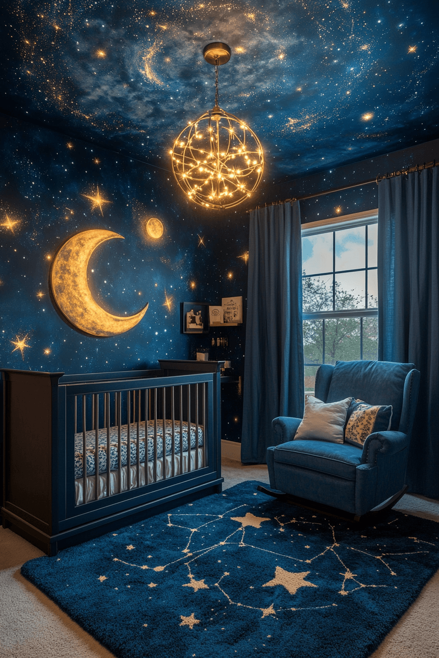 Celestial details can create nursery room decor that feels magical, calming, and perfect for bedtime. Deep tones paired with stars, moons, and soft lighting mimic a peaceful night sky. Glow accents and galaxy-inspired designs add a dreamy touch that feels enchanting. This theme helps create a soothing sleep environment while sparking curiosity about the universe. The space feels serene, cozy, and full of wonder. Click to discover more nursery room decor ideas with a starry night feel.