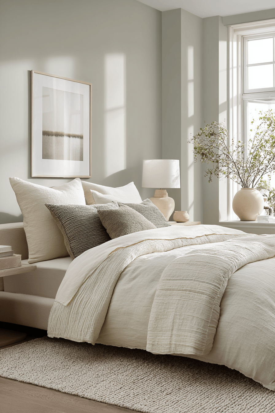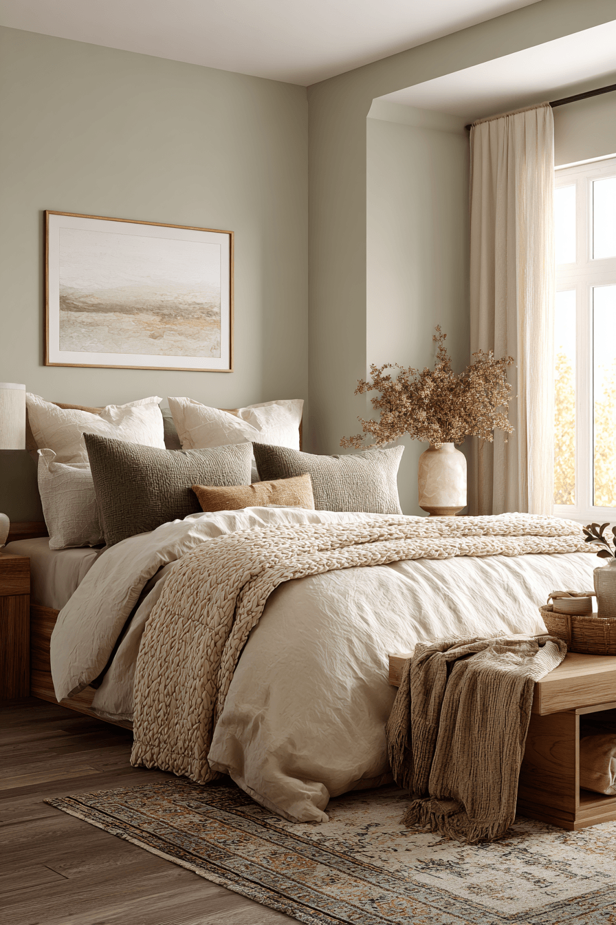 A sage green and cream bedroom feels effortlessly soothing because it blends soft color, warmth, and timeless simplicity in such a beautiful way. These ideas show how layered neutrals, gentle green tones, and thoughtful styling can create a bedroom that feels calm, cozy, and quietly elegant.