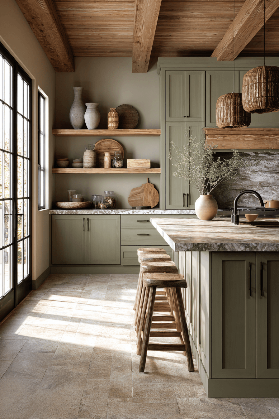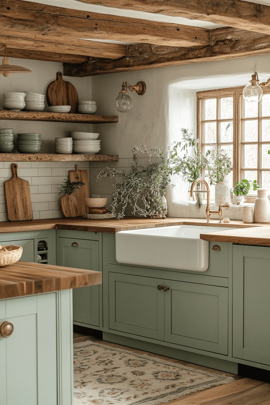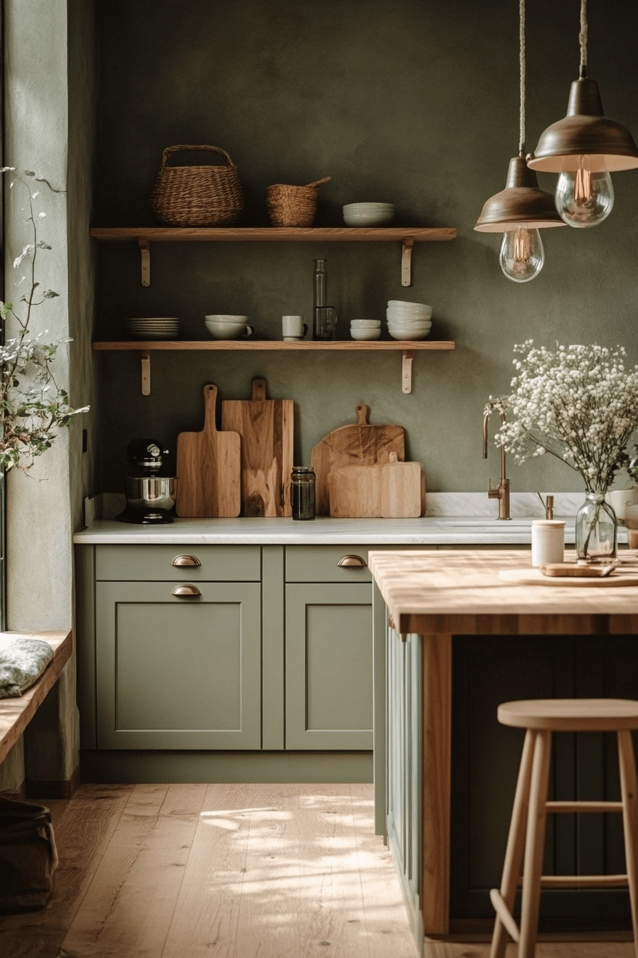 A sage green and wood kitchen feels especially welcoming because it blends earthy color, natural texture, and warmth in such an easy, beautiful way. These ideas show how soft green cabinetry, wood accents, and layered details can create a kitchen that feels cozy, stylish, and full of character.