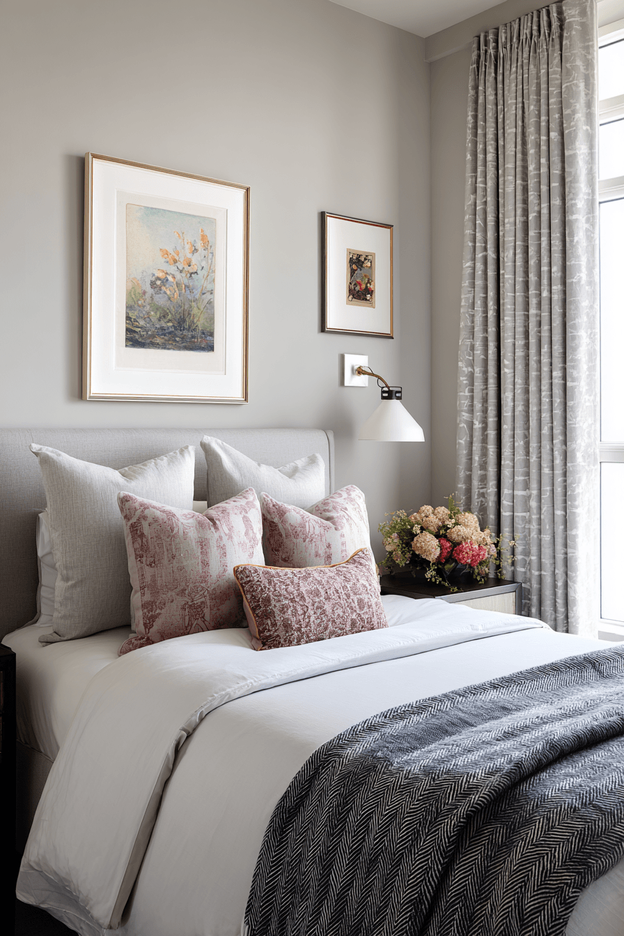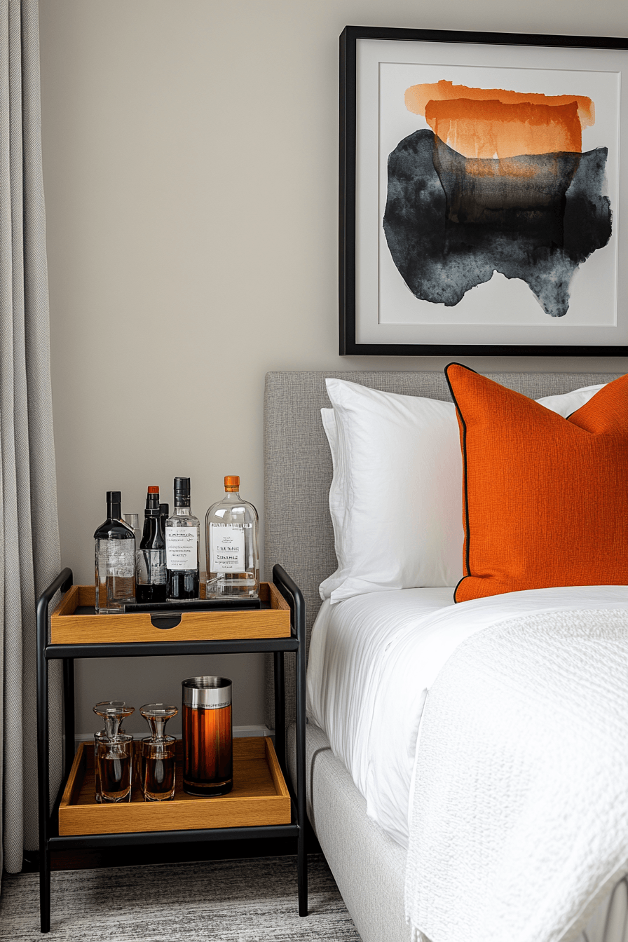 Elegance doesn’t have to be overdone to make an impact. These small guest room ideas focus on understated chic styling with neutral foundations and subtle accents. A few carefully chosen pops of color add personality without overwhelming the space. Modern furniture keeps everything looking fresh and uncluttered. The result feels refined yet welcoming. Style your guest room with this effortlessly chic approach!