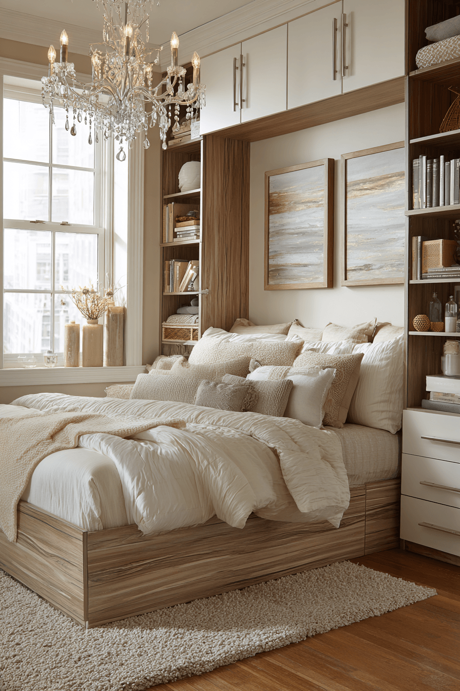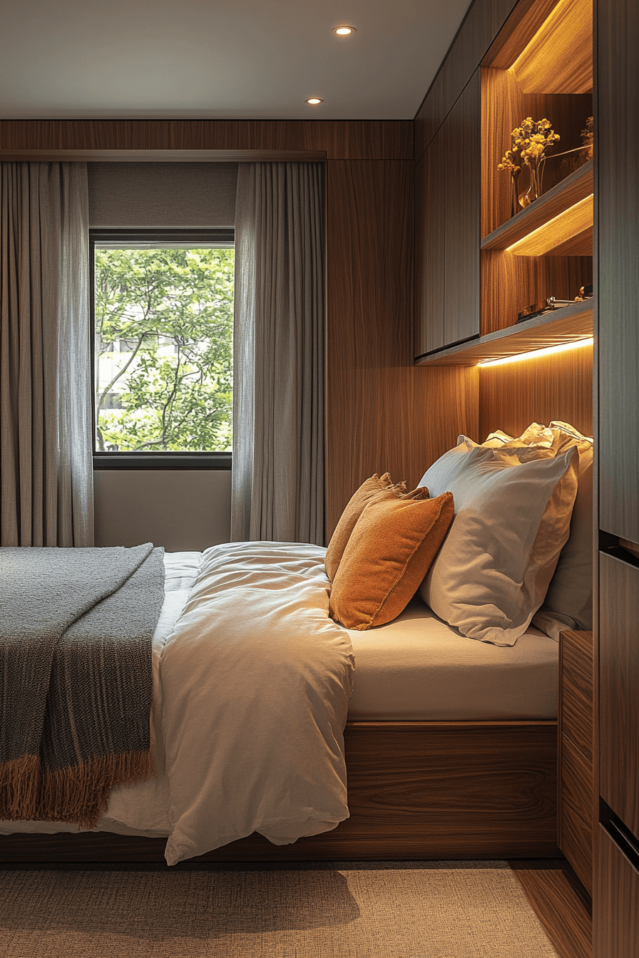 Making the most of every inch starts with thoughtful design. These small guest room ideas use built-in furniture to maximize storage while keeping the layout clean and open. Vertical shelving and custom features free up floor space without sacrificing function. Light colors and simple decor help maintain an airy feel. Everything looks intentional and well-organized. Transform your space with smart built-in solutions that truly work!