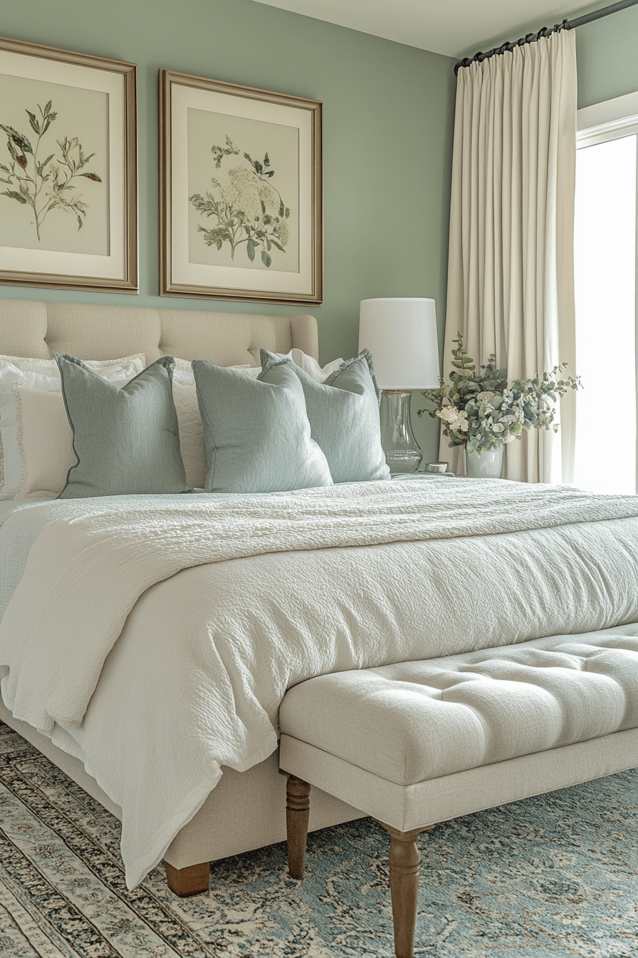 A soft, calming palette can instantly set the mood for relaxation. These small guest room ideas use gentle shades of blue, green, and gray to create a peaceful atmosphere. Minimal decor keeps the space flowing and uncluttered. The cohesive color scheme makes everything feel balanced and harmonious. It’s the perfect environment for rest and comfort. Bring tranquility into your guest room with this soothing color palette!