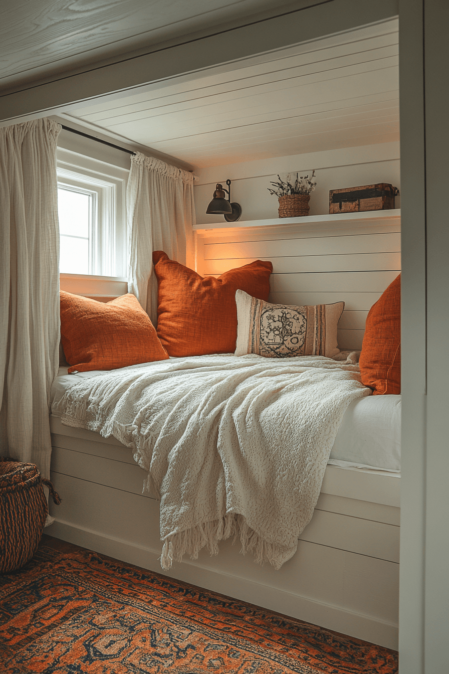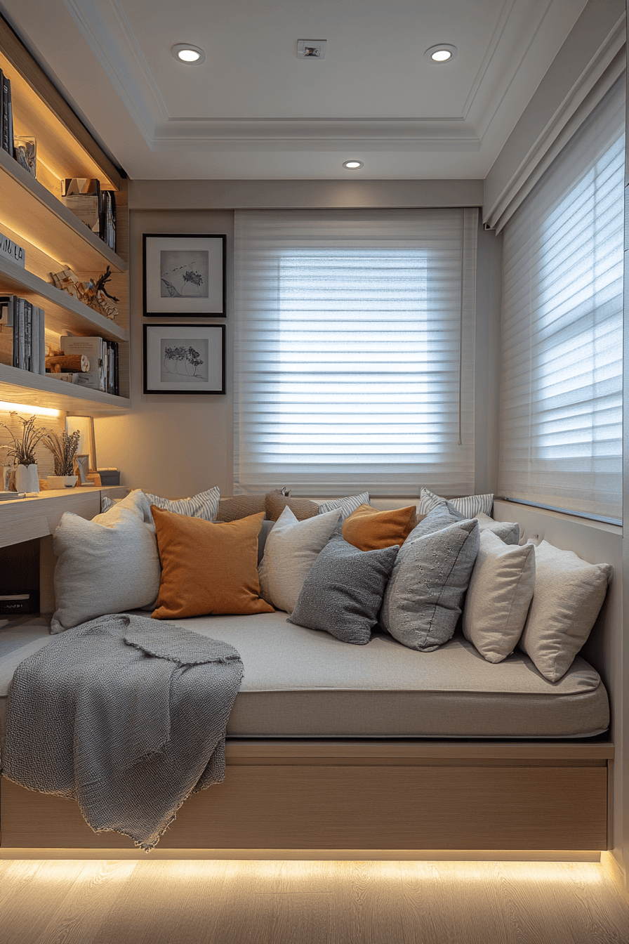 Creating a cozy little nook adds personality without taking up much space. With these small guest room ideas, a soft chair, warm throw, and gentle lighting can turn any corner into a welcoming retreat. Subtle textures and calming tones make the space feel relaxing and inviting. It’s a simple way to add comfort without overcrowding the room. Guests will love having their own quiet spot to unwind. Build your own cozy corner and make your guest room extra inviting!