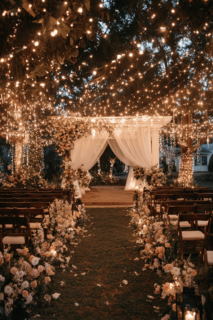 Soft lighting, dreamy florals, and delicate details can turn small wedding ideas into a truly magical experience that feels straight out of a fairytale. Twinkling string lights draped overhead create a romantic glow, while airy fabrics and pastel blooms add an ethereal touch. This setting works beautifully for backyard ceremonies, forest clearings, or intimate indoor spaces with soft lighting. Adding personal touches like handwritten vows or custom signage makes the moment even more special. The overall vibe feels intimate, enchanting, and deeply meaningful. Click to explore more small wedding ideas filled with whimsical charm.
