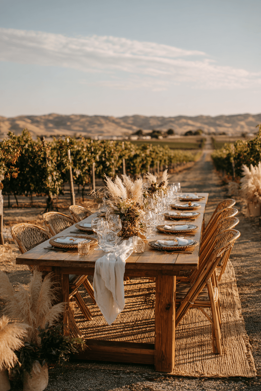 A vineyard setting adds romance and natural beauty to small wedding ideas, creating a warm and elegant atmosphere. Rows of vines, earthy tones, and soft lighting make the space feel inviting and picturesque. Wine-inspired details and rustic decor enhance the overall charm without overpowering the setting. This theme is perfect for couples who love relaxed sophistication and scenic views. The entire experience feels intimate, cozy, and effortlessly beautiful. Click to explore more small wedding ideas with vineyard inspiration.