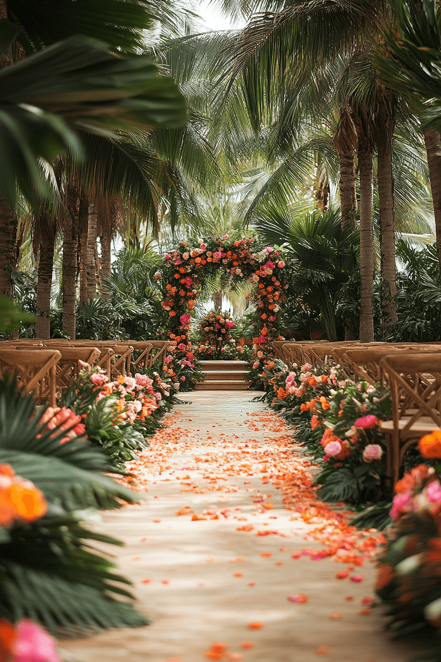 A tropical-inspired celebration fills small wedding ideas with vibrant energy, lush greenery, and bold color. Bright florals, palm leaves, and island-style decor create a lively and festive atmosphere. Whether on a beach or in a garden, this theme instantly feels like a getaway. Light fabrics and natural textures keep the look breezy and relaxed. It’s perfect for couples who want a fun, joyful celebration with a touch of paradise. Tap here to uncover more small wedding ideas with tropical flair.