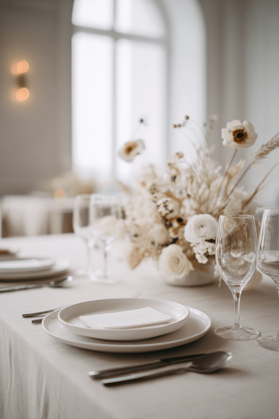 A clean and refined aesthetic makes small wedding ideas feel effortlessly elegant while keeping the focus on what truly matters. Neutral tones, simple decor, and crisp lines create a calm and sophisticated atmosphere that feels timeless. Minimal florals, sleek table settings, and soft lighting elevate the space without overwhelming it. This approach works beautifully for intimate venues where every detail can shine. The result is a celebration that feels modern, polished, and meaningful. Click to explore more small wedding ideas with a minimalist touch.