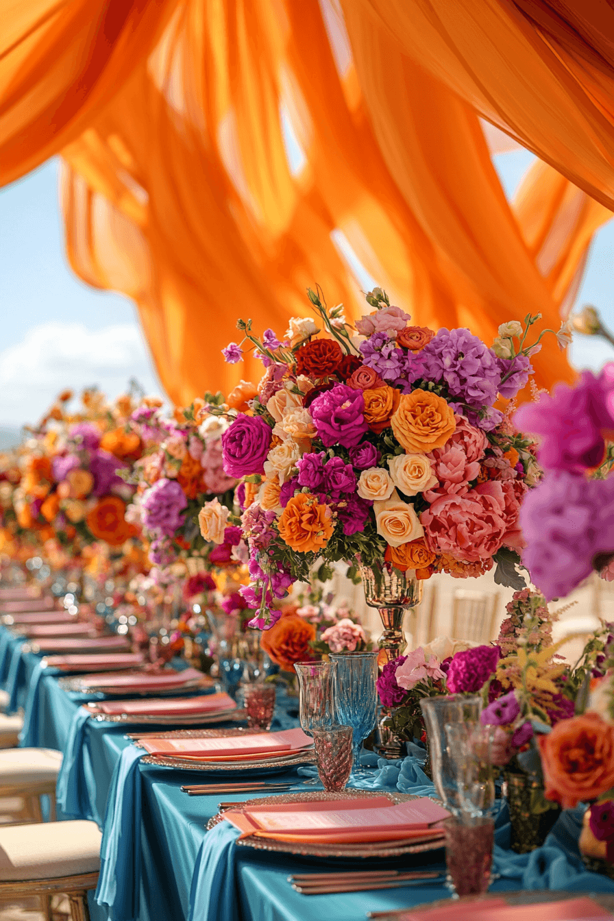 Adding bold pops of color instantly energizes small wedding ideas, making the celebration feel lively and full of personality. Bright centerpieces, vibrant linens, or colorful outfits create eye-catching contrast against neutral surroundings. This approach allows you to express your unique style while keeping the overall design balanced. Thoughtful color placement keeps the look cohesive and visually exciting. The atmosphere becomes fun, joyful, and memorable for everyone involved. Tap to explore more small wedding ideas with colorful accents.