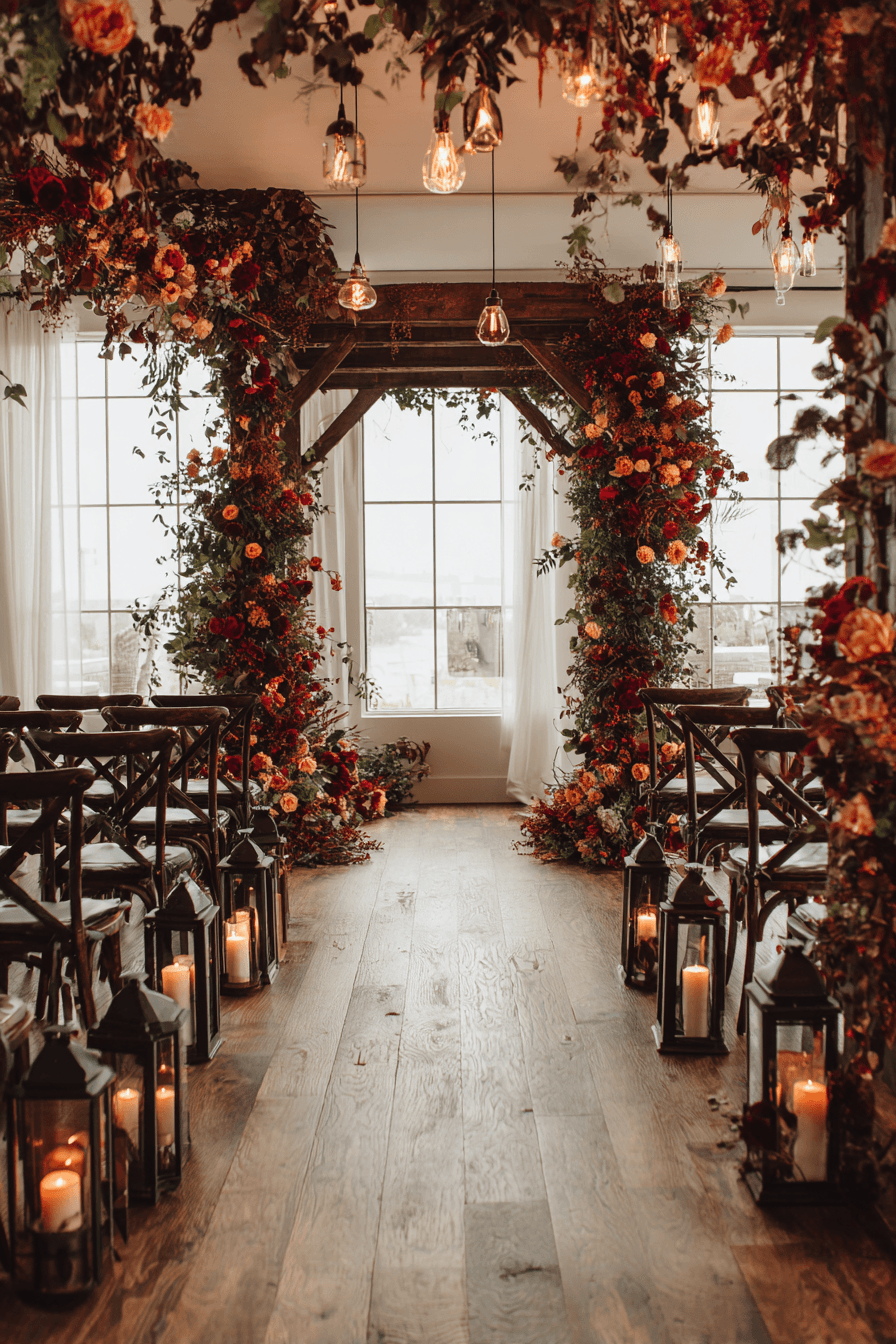 Rich seasonal colors and rustic textures make small wedding ideas feel incredibly warm and inviting during the fall months. Deep reds, burnt oranges, and golden tones pair beautifully with wood elements and cozy decor. Outdoor ceremonies surrounded by autumn foliage create a naturally stunning backdrop with minimal effort. Adding seasonal florals, pumpkins, or lanterns enhances the cozy and romantic feel. The crisp air and warm palette create a celebration that feels both intimate and vibrant. Tap to discover more small wedding ideas inspired by autumn charm.