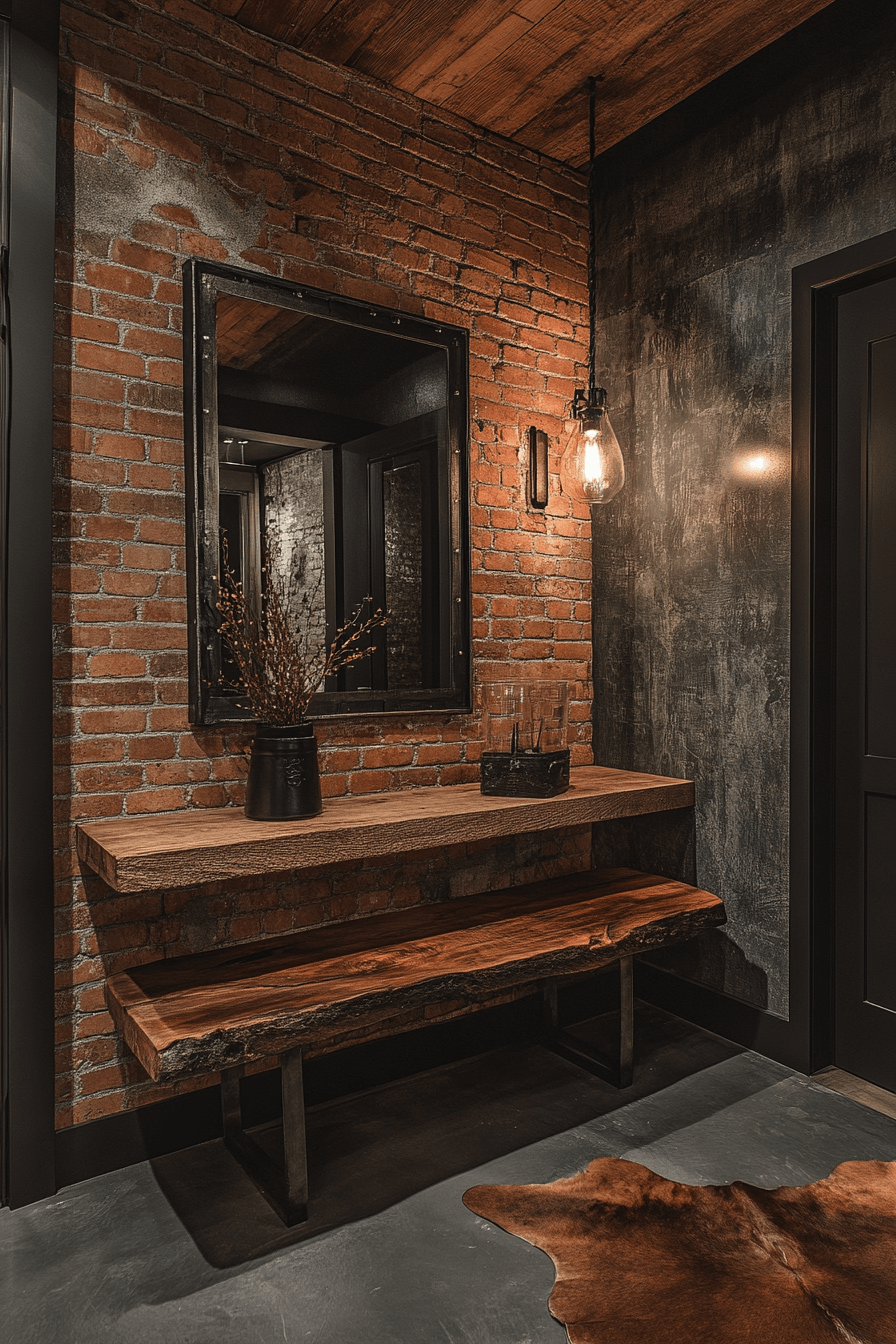 Bring a bold urban vibe into your tiny apartment entryway by embracing raw materials and edgy textures that instantly stand out. Black metal hooks, concrete-inspired surfaces, and weathered wood finishes create a modern industrial look full of character. A narrow bench with hidden storage keeps shoes organized while adding to the aesthetic. Even the smallest layout can feel striking with the right mix of elements. This style works beautifully for those who love clean design with a bit of grit. It’s a powerful way to make your entrance unforgettable. Discover how to achieve this industrial edge today.