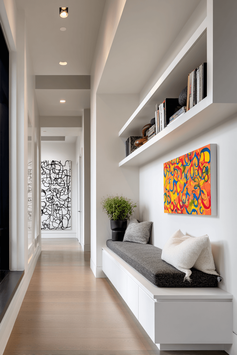 Transform your tiny apartment entryway into a personal gallery by using wall space to showcase art and meaningful decor. Floating shelves or slim ledges create a perfect display for framed prints and small collectibles. Decorative hooks blend function with style, keeping the setup both practical and visually engaging. Thoughtful lighting highlights each piece, turning the space into a mini creative statement. This approach allows your entry to reflect your personality the moment you walk in. It’s an ideal solution for renters who want impact without major changes. Click to create your own gallery-inspired entrance.