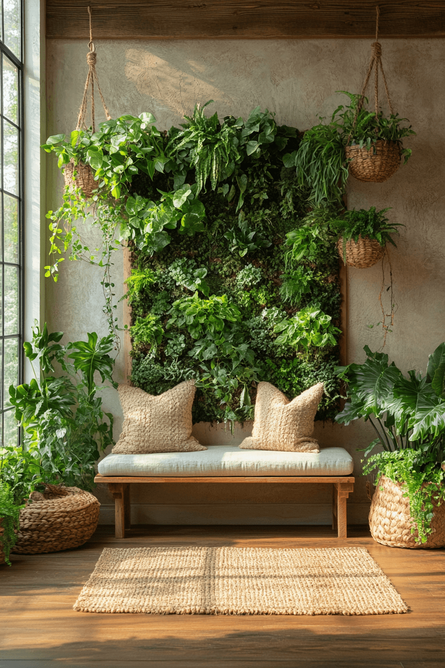 A nature-inspired theme can breathe fresh energy into your tiny apartment entryway while keeping it light and uplifting. Vertical planters or hanging greenery introduce vibrant life without using valuable floor space. Natural materials like light wood and soft fabrics enhance the calming atmosphere. A compact bench with hidden storage keeps everything practical and organized. The overall look feels refreshing, balanced, and full of personality. It’s an ideal setup for anyone who loves bringing the outdoors in. Refresh your entry with greenery-inspired design today.
