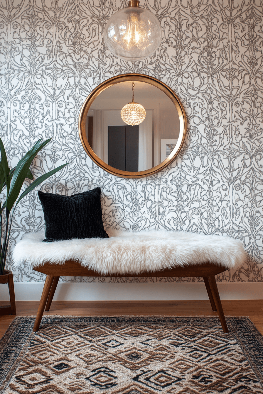 Strategic mirror placement can completely transform your tiny apartment entryway into a space that feels open and expansive. A full-length mirror stretches the visual boundaries and reflects light beautifully. Pairing it with a narrow console and a mirrored tray keeps essentials organized in a stylish way. This simple trick enhances brightness and creates a breezy, inviting atmosphere. Designers love this approach for maximizing tight spaces without adding bulk. It’s an easy way to elevate both form and function. Click to see more mirror-enhancing entry ideas.