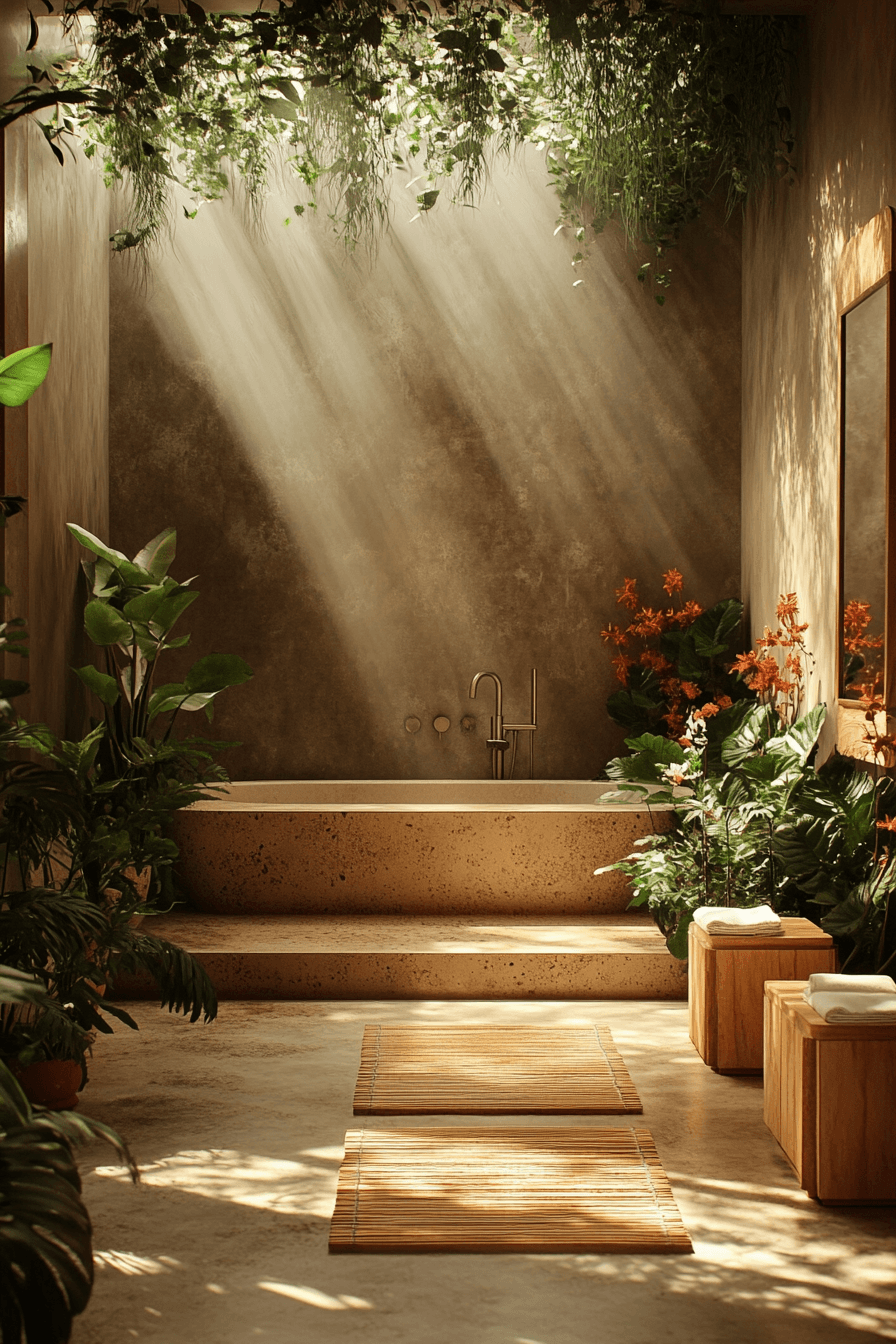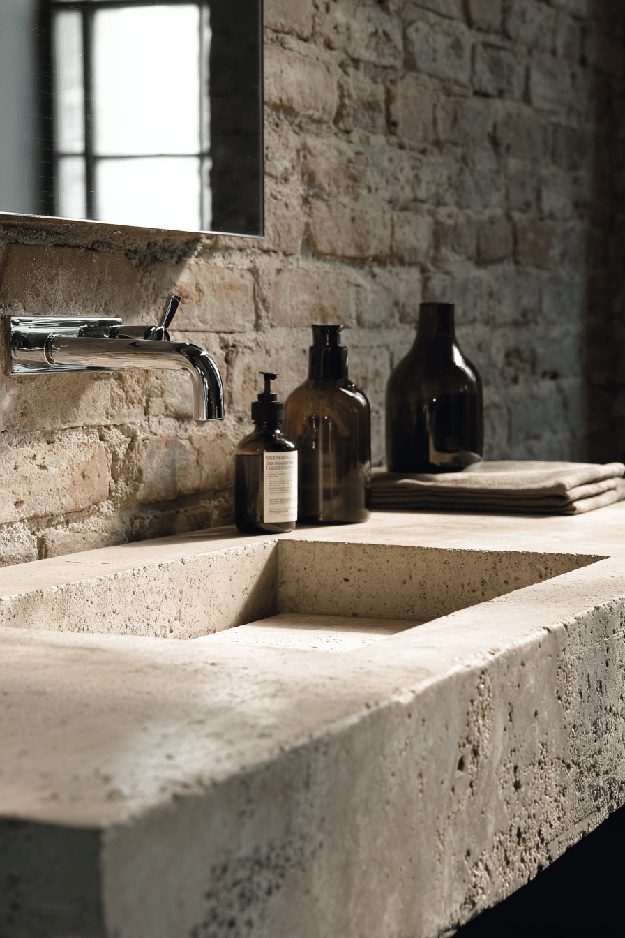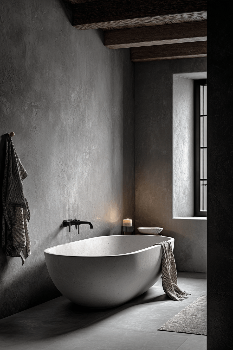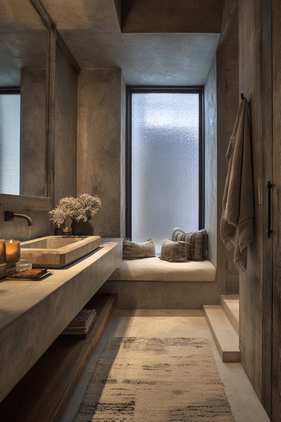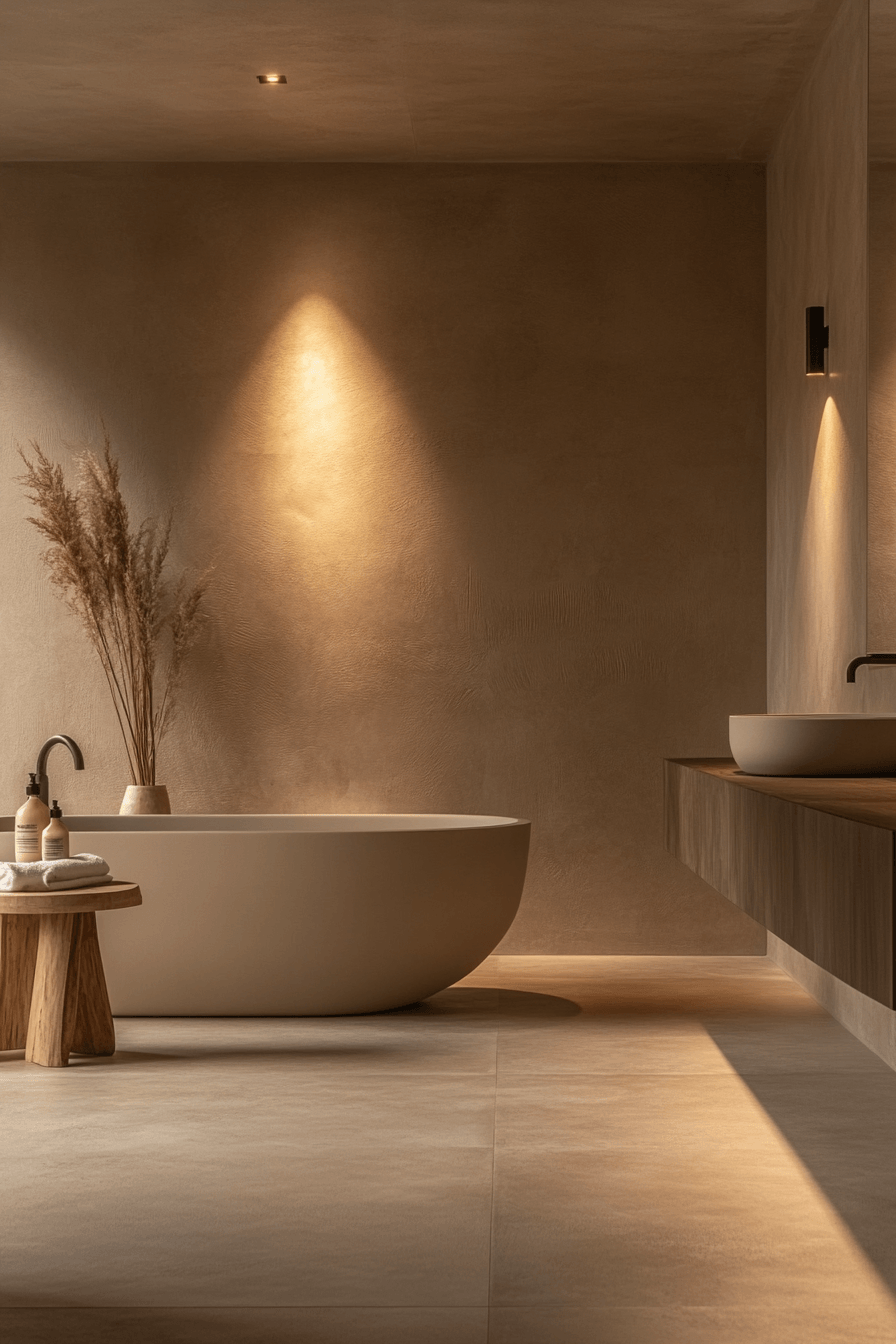Subtle details take center stage in a wabi sabi bathroom that proves simplicity can be incredibly beautiful. Minimal decor and quiet design choices work together to create a balanced, calming space that feels effortlessly refined. Small touches like a stone dish or a simple wooden stool add charm without overwhelming the room. Soft lighting and muted tones keep everything feeling peaceful and cohesive. It’s all about appreciating the little things that make a space feel complete. Take a moment to explore more quietly elegant bathroom ideas.
