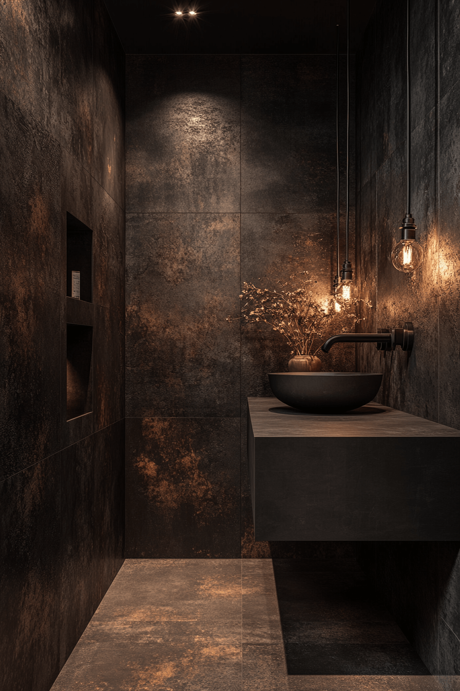 Earthy textures shine in a wabi sabi bathroom that embraces raw beauty through clay, stone, and terracotta finishes. Imperfect surfaces add character and warmth, making the space feel authentic and lived-in. Rich, natural tones create a grounded environment that instantly relaxes the senses. Soft lighting enhances every texture, highlighting the beauty of each material. The overall vibe is cozy, calming, and effortlessly stylish. Discover more ways to bring earthy elegance into your bathroom.