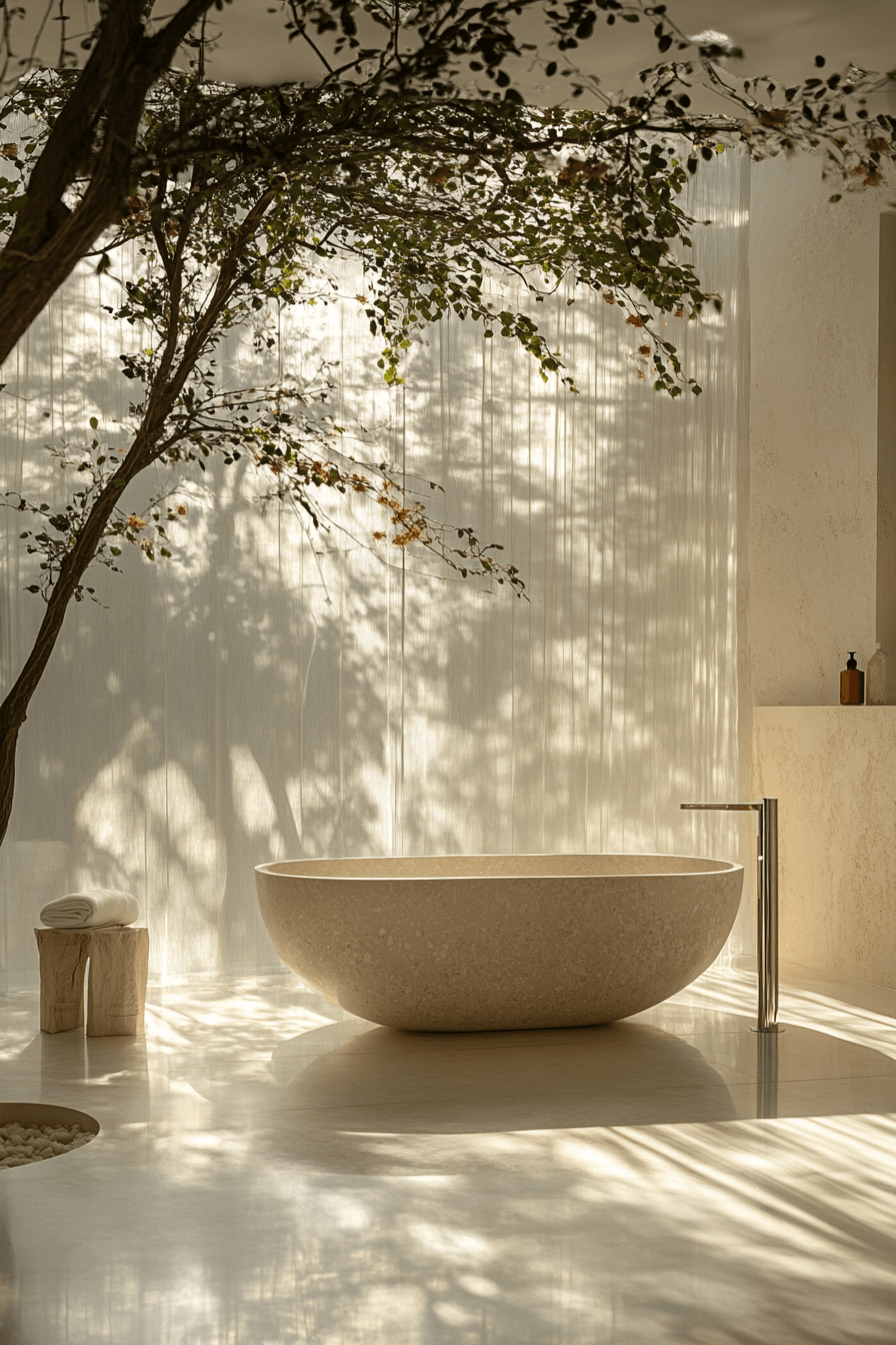 A peaceful retreat comes to life with wabi sabi bathroom ideas that focus on quiet simplicity and stillness. Sound-absorbing textures like soft fabrics and plush surfaces help create a hushed, calming environment. Minimal decor keeps distractions away, allowing the space to feel open and restful. Gentle lighting and muted tones further enhance the serene atmosphere. It’s a place designed for reflection and relaxation. Step into more inspiration for creating your own quiet sanctuary.