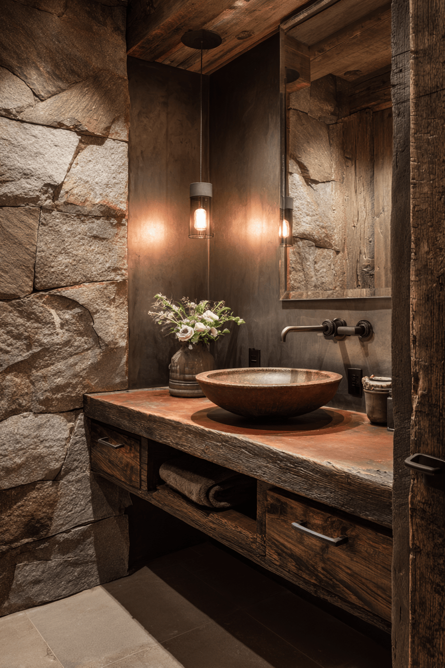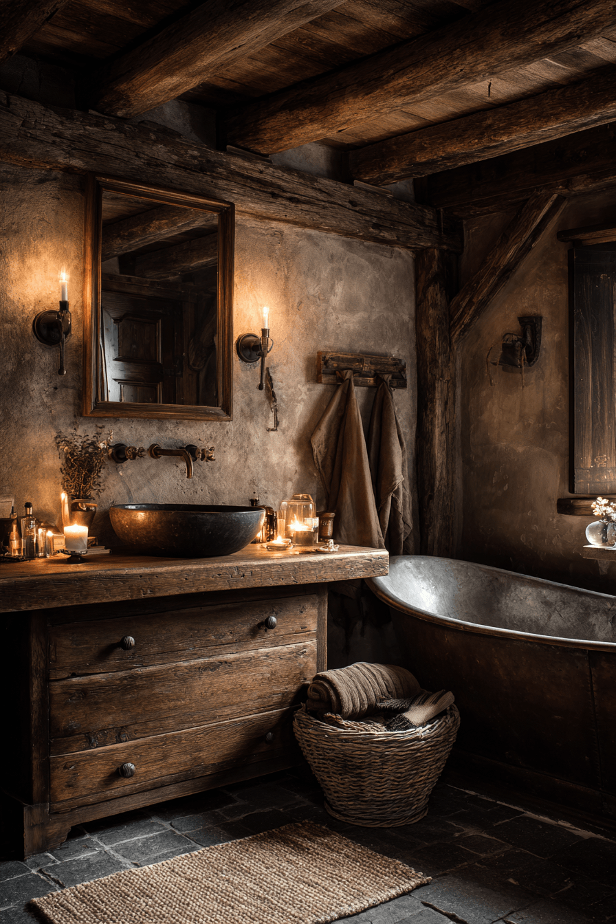 Blending rugged charm with refined touches, a wabi sabi bathroom can feel both grounded and elevated at the same time. Natural materials like reclaimed wood or textured stone pair beautifully with sleek fixtures for a balanced look. This mix creates depth while still maintaining a welcoming, relaxed vibe. Warm lighting highlights every surface, bringing out the richness of each material. It’s a perfect harmony of rustic and modern design. Take a closer look at ways to achieve this beautifully balanced style.